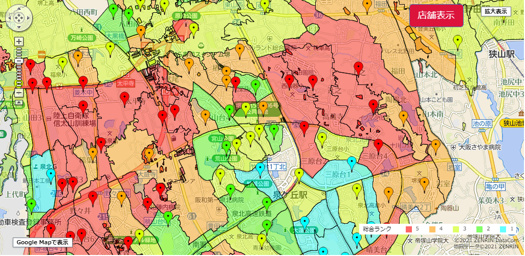 住民基本台帳や国勢調査・法人電話帳などのデータをもとに調査した、ライフスタイルデータ、消費支出などのゼンリンの地図と合わせて表示することが可能で膨大なデータです。