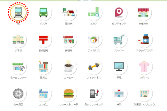 選択項目は多数ありますが、画像では駅を選択した場合の使用例でご説明します。